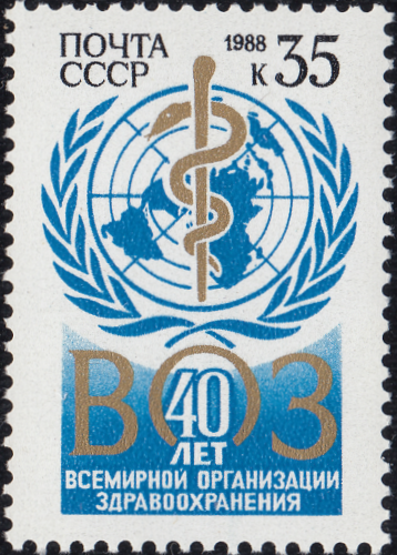 1988. 40th Anniversary of World Health Organization. Condition: MNH OG. Catalogs: Scott 5633, Standard Collection 5846. Perforation: harrow 11½.