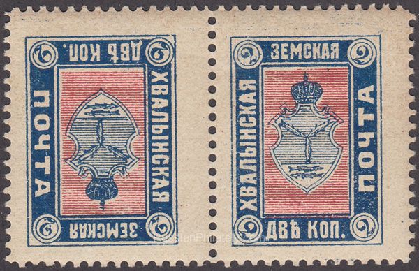 Khvalynsk Sch #6 type 5 Ch #4, MH OG zemstvo stamp tete-beche pair.
